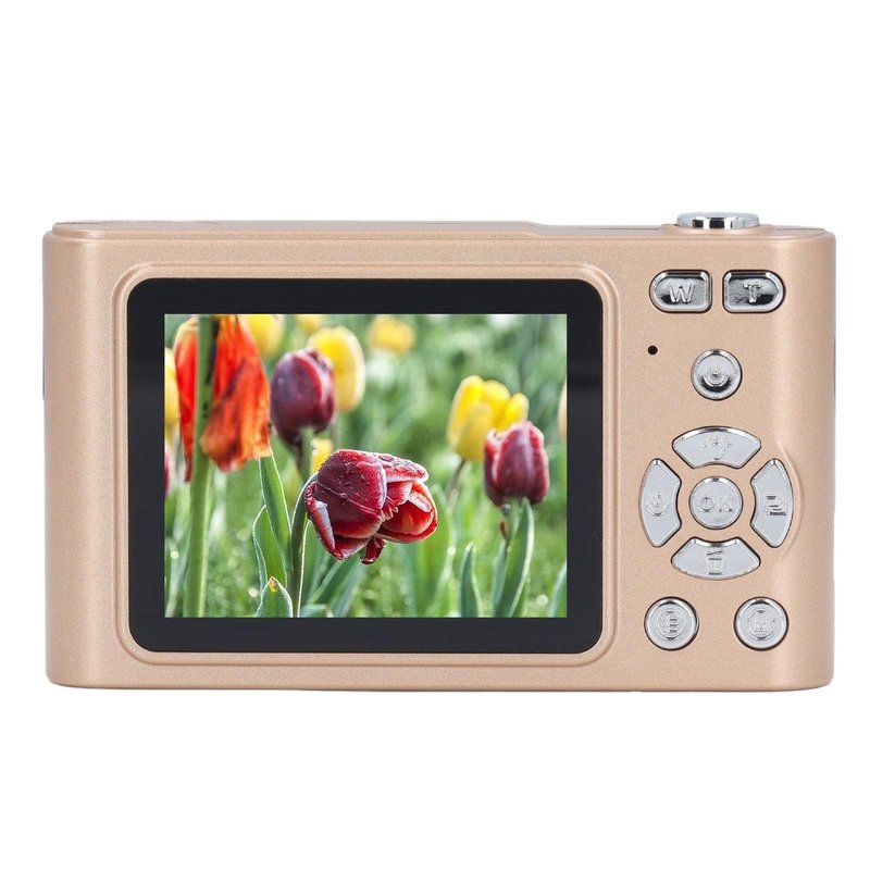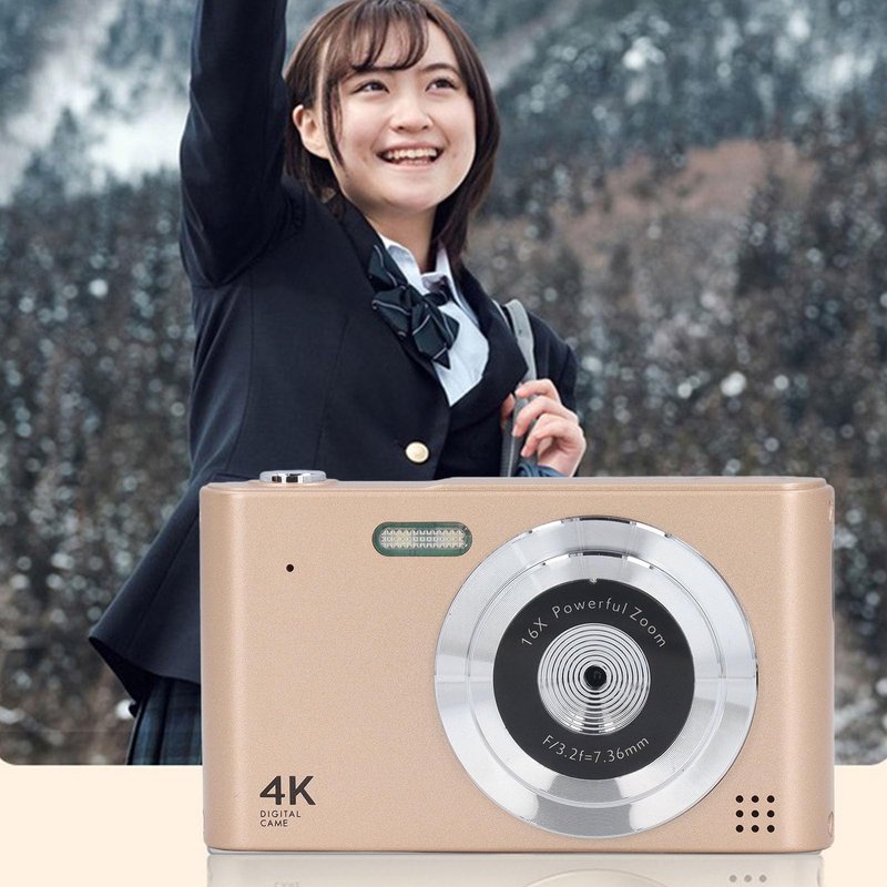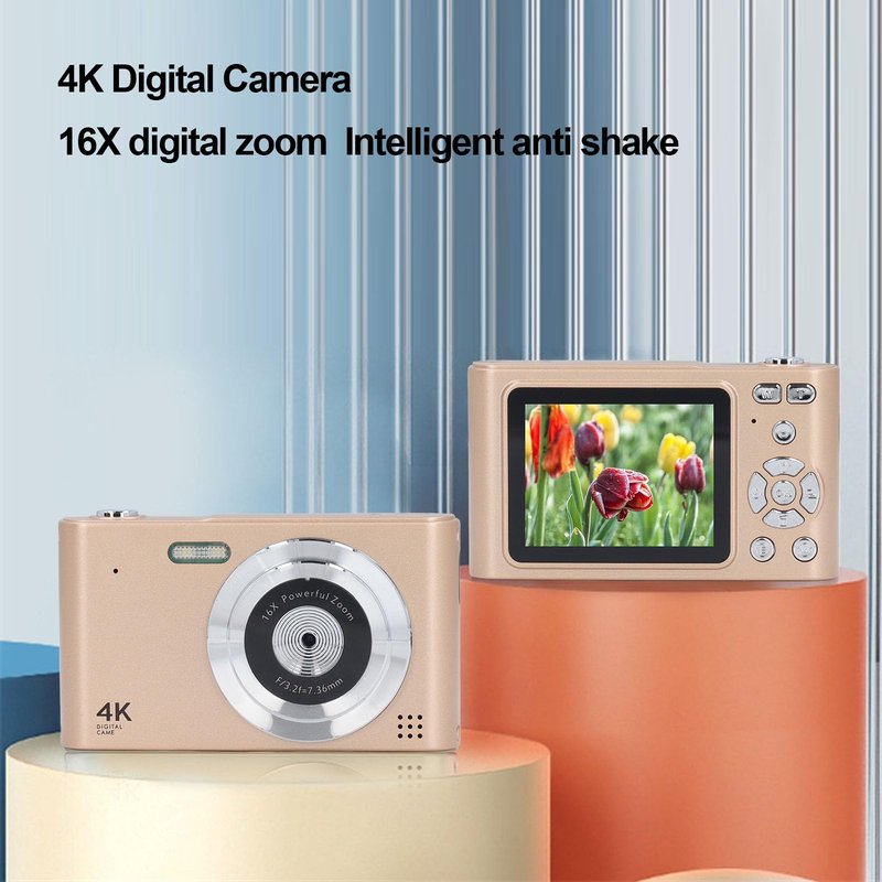 4K Digital Camera, 16X Digital Zoom 48MP Vlog Camera, 2.4in Screen, Built in Flashlight, CCD Camera, Anti Shake, Portable Camera for Beginners and Children (Gold)