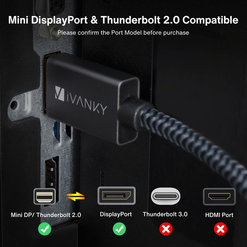 - 【iVANKY's Customer Support】You'll receive a Mini DisplayPort to DisplayPort Cable, along with an 18+36-month customer support and our friendly support team ready to help within 24 hours. Each iVANKY cable undergoes rigorous quality control to ensure optimal functionality. We go beyond selling cables by providing expert technical support to every customer