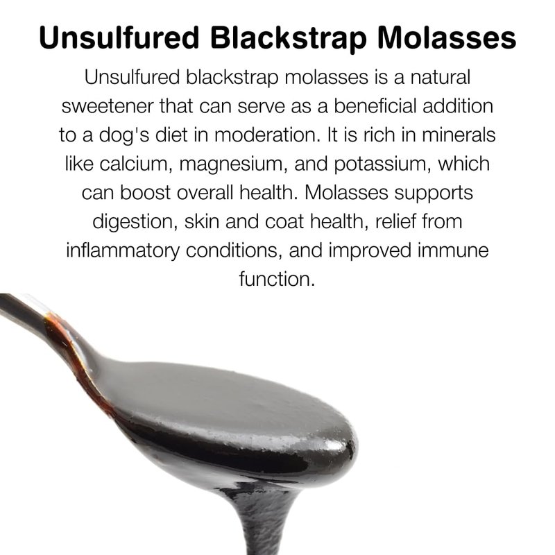 - Nutrient‐Rich Molasses – Naturally high in calcium, iron, and minerals to support canine wellness.