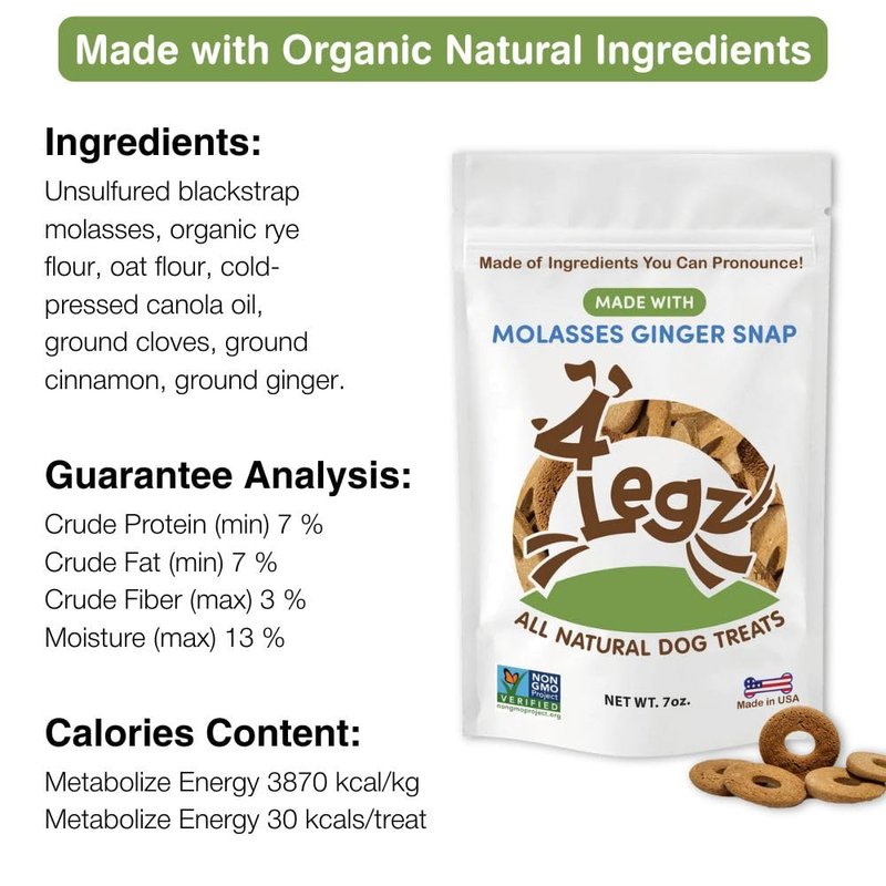 4Legz Molasses Ginger Snap Dog Treats – Healthy, Crunchy, Vegan Biscuits with Whole & Real Ingredients – All Natural & USA‐Baked, 7 oz