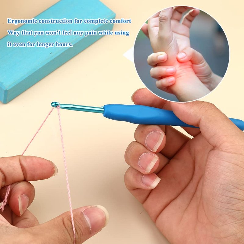 - 【Ergonomic Soft Grip】- The crochet needles are made of premium aluminum, which is light and durable. The ergonomic handle will give you a comfortable grip and relieve arthritis and cramps in your fingers.