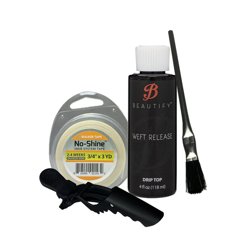 4oz Drip Top Weft Release w/No-Shine Bonding Roll 3/4" X 3 YDS Adhesive Tape, Brush & Hair Clip Bundle Pack | Wig Glue Tape Adhesive Extensions Tape | Bold Hold Adhesive Remover