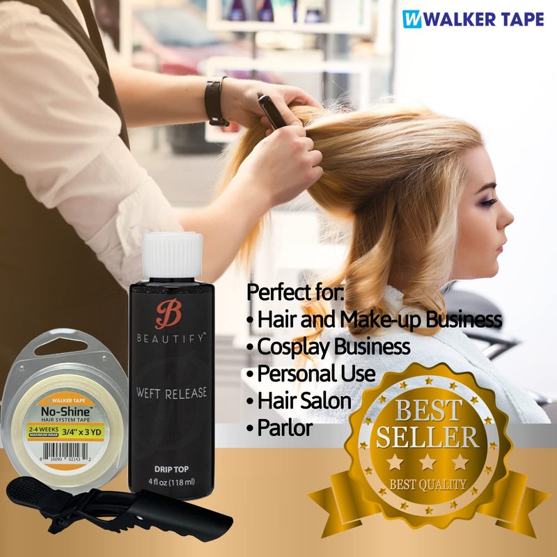 4oz Drip Top Weft Release w/No-Shine Bonding Roll 3/4" X 3 YDS Adhesive Tape & Hair Sectioning Clip Bundle Pack | Wig Glue Tape Adhesive Extensions Tape | Bold Hold Adhesive Remover