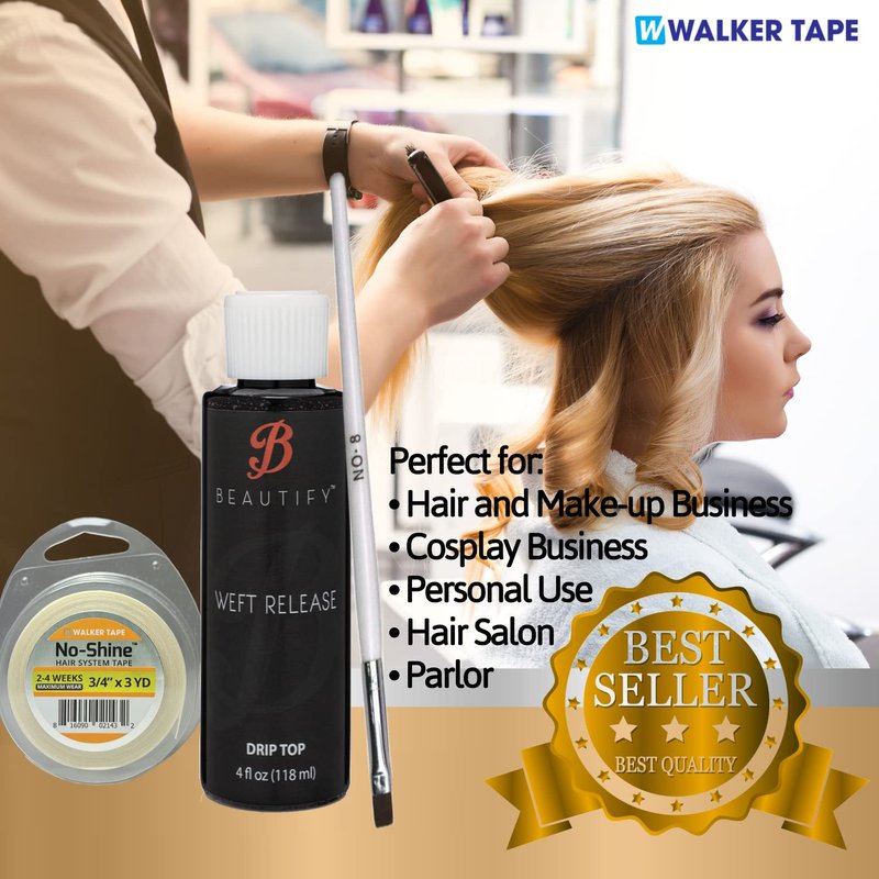 4oz Drip Top Weft Release w/No-Shine Bonding Roll 3/4" X 3 YDS Adhesive Tape & White Brush Bundle Pack | Wig Glue Tape Adhesive Extensions Tape | Bold Hold Adhesive Remover