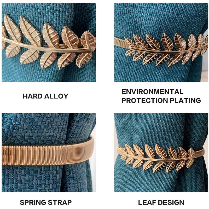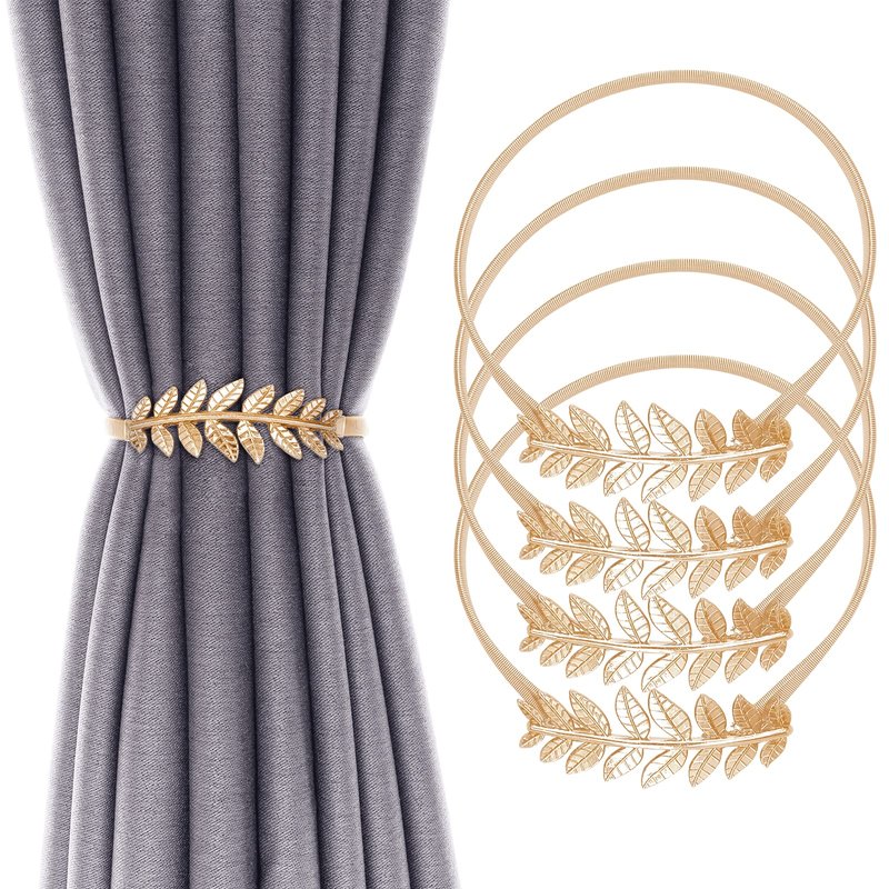 4Pack Curtain Tiebacks Aluminum Alloy Spring Design Curtain Holdback Leaf Carving Design Curtain Ties for Drapes Curtain Ties Backs Curtain Modern Style Curtain Holdback Decor(Gold Leaf)