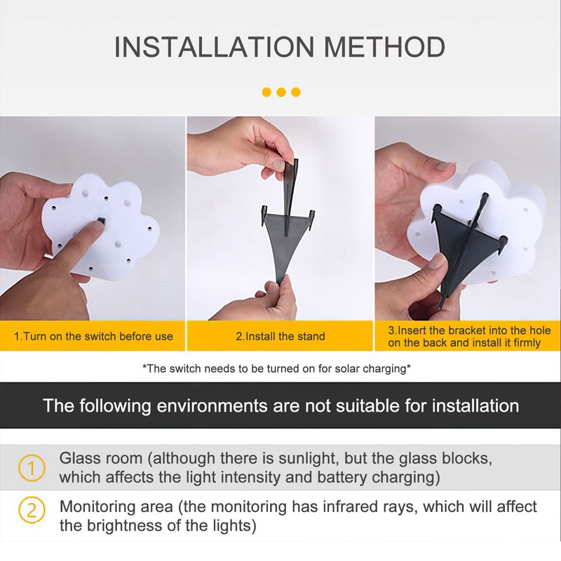 - 【Easy to install】no wires are required, just turn on the bottom switch and place it on a flat ground to use it. If you want to install it on the grass, install the bottom bracket and you can use it