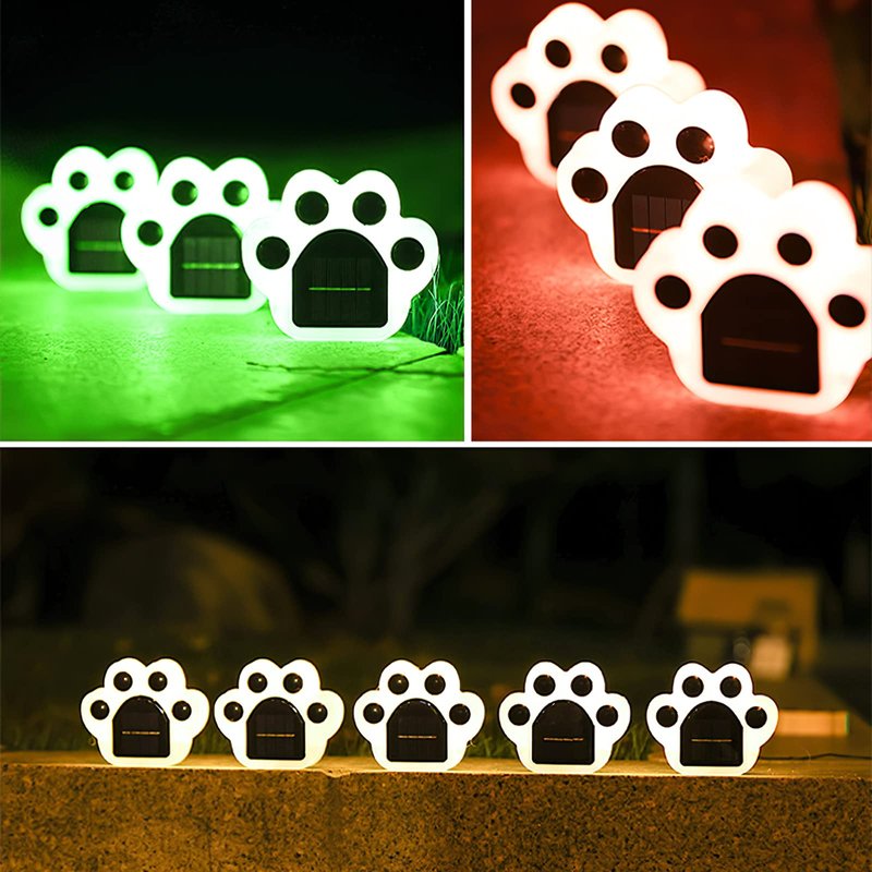 4Pack Paw Print Solar Lights Color Changing Solar Paw Print Lights Outdoor Waterproof, Dog Paw Solar Ground Lights Garden Lawn Landscape Path Lights Dog Print Cat Bear Paw Animal Footprint Yard Lights