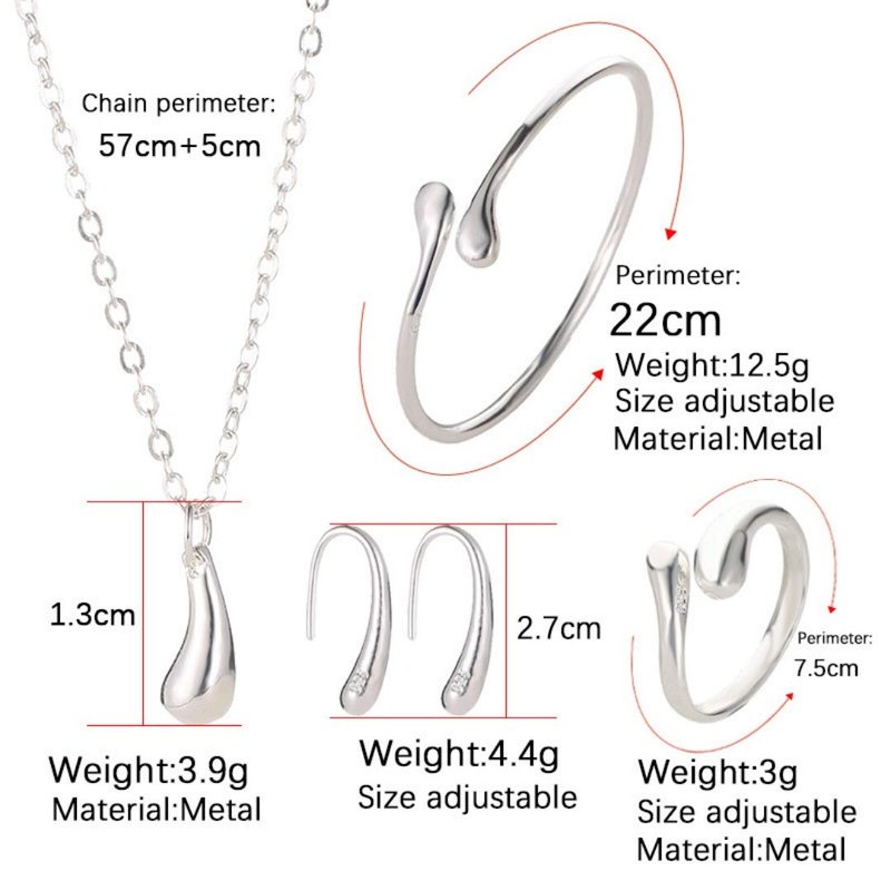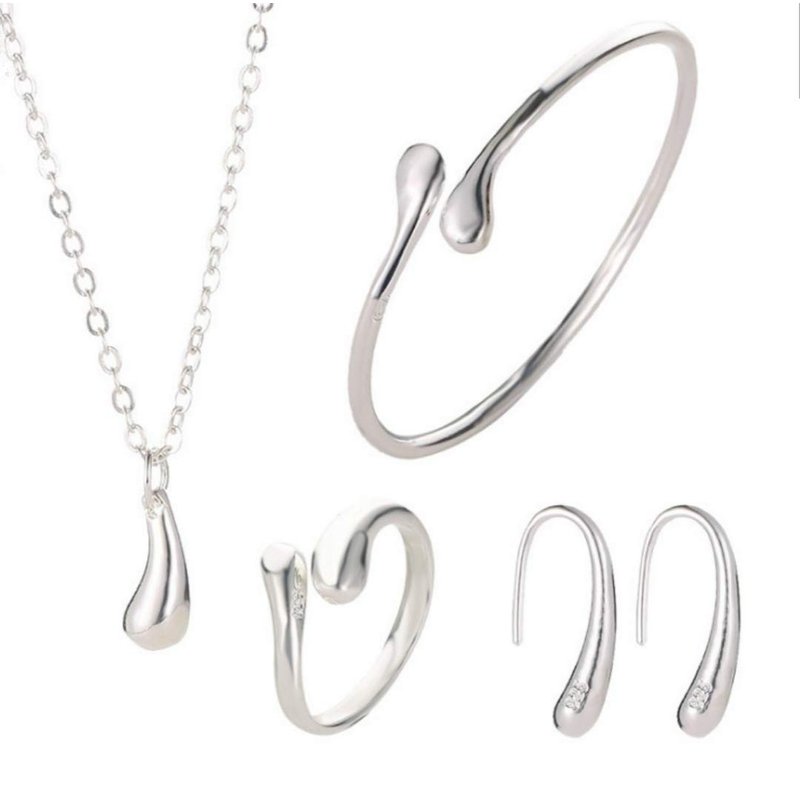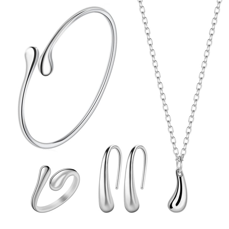 4PCS 925 Sterling Silver Jewelry Set for Women Teardrop Pendant Necklace Earrings Bracelet Ring Fit with Party Meeting Dating Wedding Daily Birthday Gift