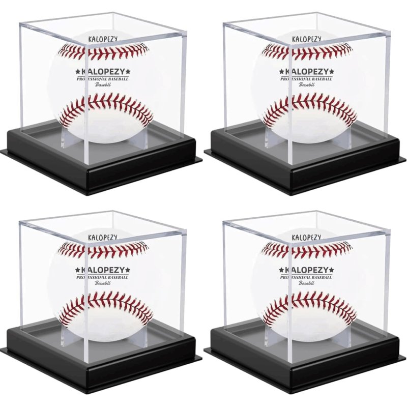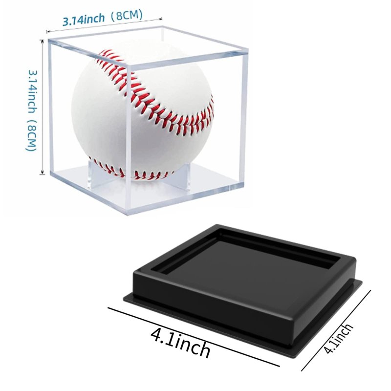 - ⚾[SPECIFICATION AND SIZE]The display case a set of 4, the size is 3.15" × 3.15" × 3.15" (8cm × 8cm × 8cm). Present black base set of 4, size is 4.1"*4.1"*0.85" (10 cm × 10 cm × 2 cm).Please note: does not contain baseball. The baseball display case is suitable for official size baseballs to protect you Beloved baseball. The display box is easy to disassemble and is divided into upper and lower parts; push up and pull to open. The precise groove design makes the baseball case perfect connection.