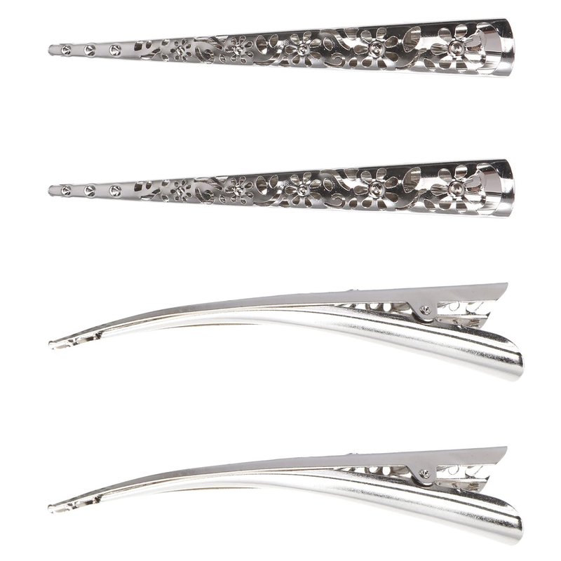 4pcs Bill Hair Clips, Hollow Style Metal Alligator Curl Clips without Teeth Headpiece Hair Accessories for Women Girls ( Silver )