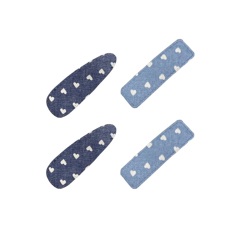 - Mix and Match: gift set includes 4pack light blue and deep blue denim hair clips with heart print,you can mix and match them to create your unique style or share them with friends and family. Perfect birthday, Christmas, valentines day halloween, fall thanksgiving festival, winter, early spring, summer holiday, back to school, cow theme party gifts for her.