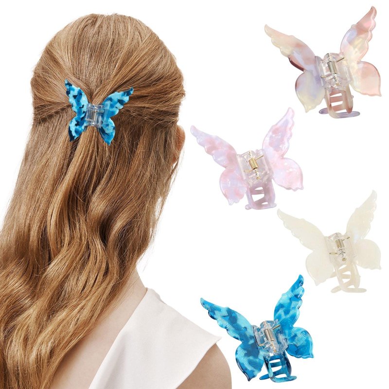 4PCS Butterfly Hair Claw Clips for Women Tortoise Shell Hair Clips 2.5inch Beautifly Butterfly Hair Clips for Thick and Medium Hair, Claw Hair Clips Hair Styling Accessories Gifts for Women (Style A)