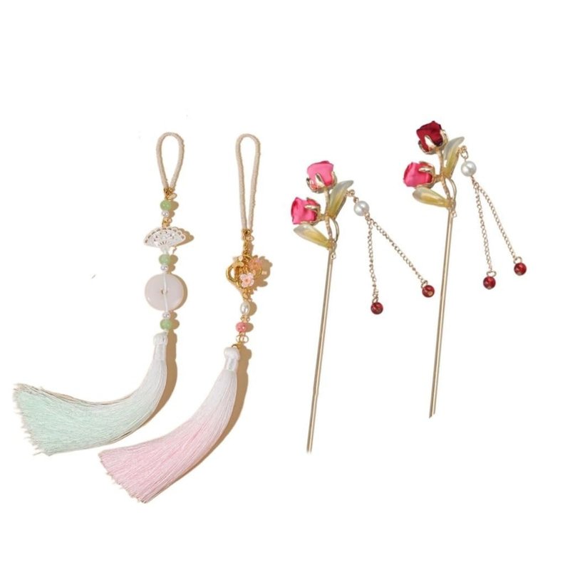 Type: Hanfu Cheongsam Tassel Pendant Brooch and Rose Hairpin Set