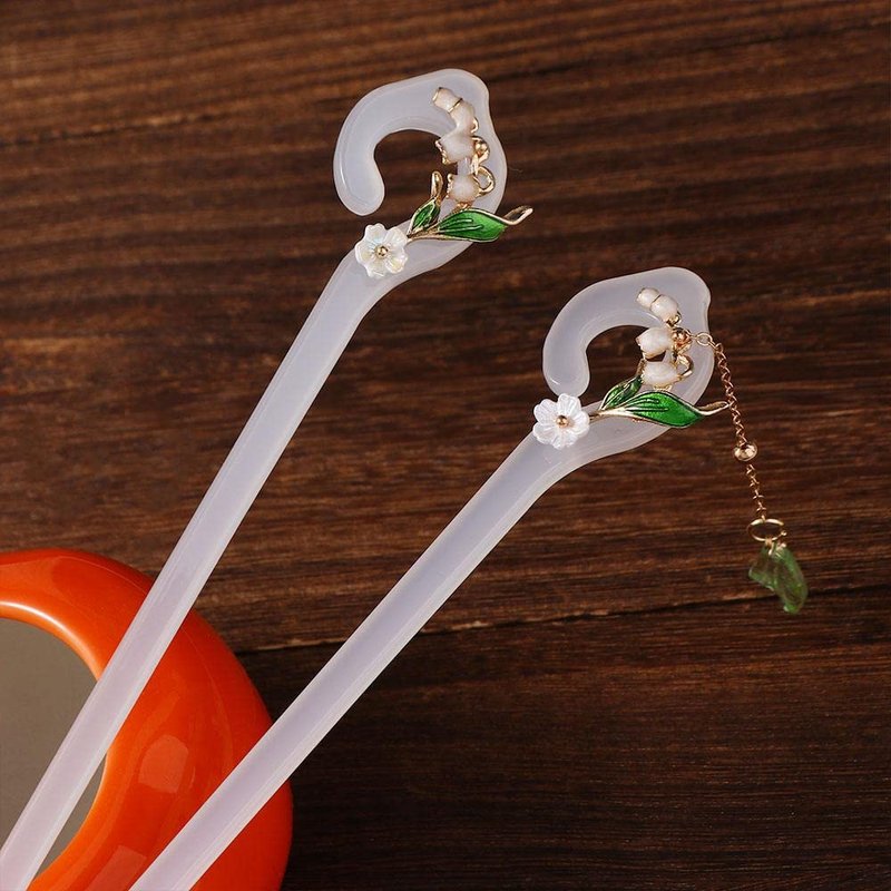 - Easy to use: The lily of the Valley Hanfu hair clip is not easy to break or bend, and the flower is firmly attached to the hair rod, which is not easy to fall or fade. It won't do any damage to your hair. It's safe and stable.
