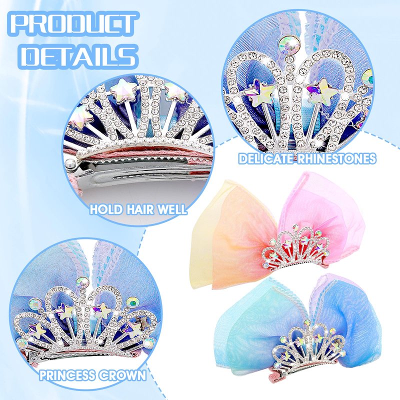 - 【Elegant Stylish】Our crown bow cute hair clips combine form and function, hair bow hair clips add a touch of royal to you. These princess crown headbands elevate any outfit, and rainbow hair bows turn your little princess into the center of attention.