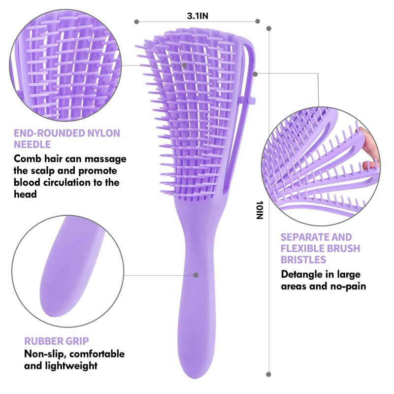 4pcs Curly Hair Brush Set for Adult & Kids Wet or Dry Hair, Detangling Brush for 3/4ABC Hair with Hair Detangler Brush Wide Tooth comb(4, Purple)