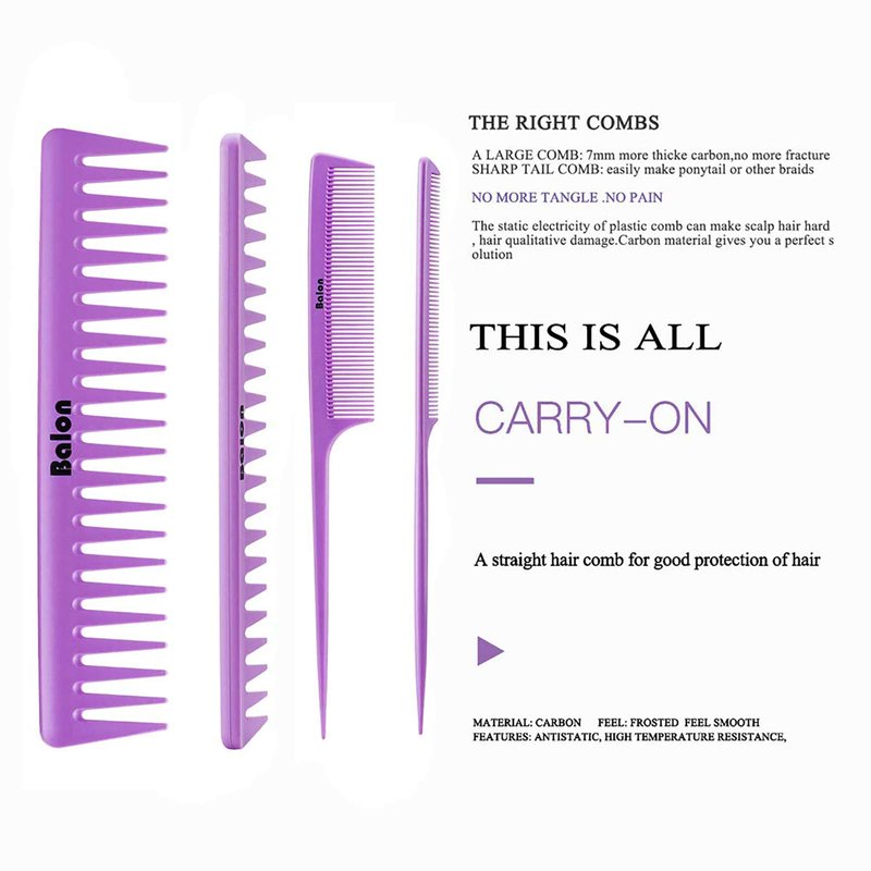 - ANTI-STATIC BY CARBON MATERIAL: All of the comb for hair are made of carbon material antistatic, the soft pins bring superlative toughness and durability. Extreme solutions to hair winding and electrostatic problems.