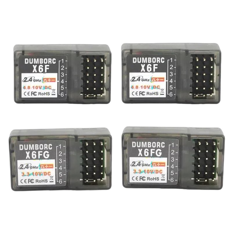 (4PCS) DUMBORC2.4G 6 Channel RC Car Receiver X6F X6FG Combo for RC Car Boat Used for DUMBORC X4 X6 X10 Transmitter (X6F*2 X6FG*2)