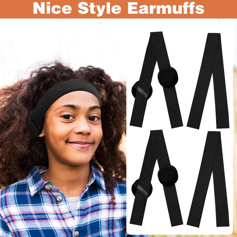 4Pcs Elastic Bands for Wig, Lace Bands for Wig Grip Lace Melting Band with Ear Muffs, Wig Band for Lace Front and Frontal Edge Control, Wig Band Wrap for Keeping Wigs in Place with Ear Covers (Black)