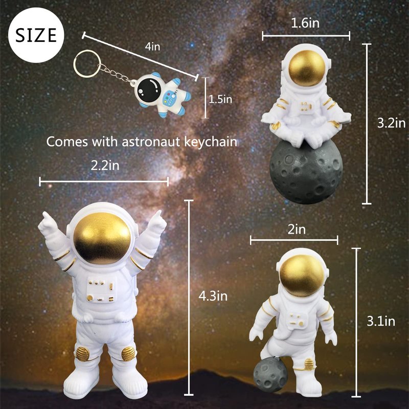 - 💖Astronaut cake topper💖:3x Astronaut figurine and 1 x Keychain. Size: Approx 2-4in