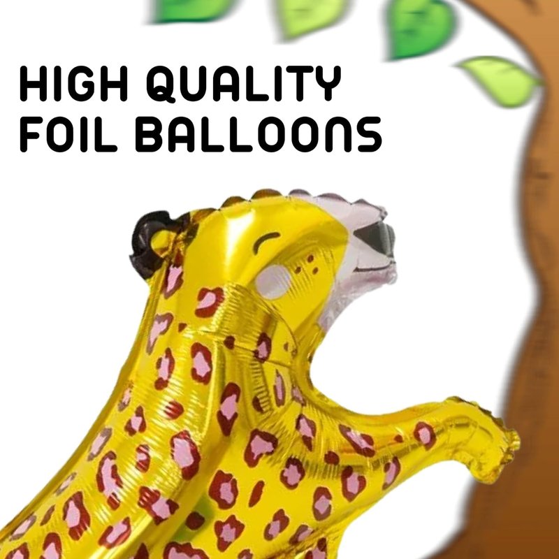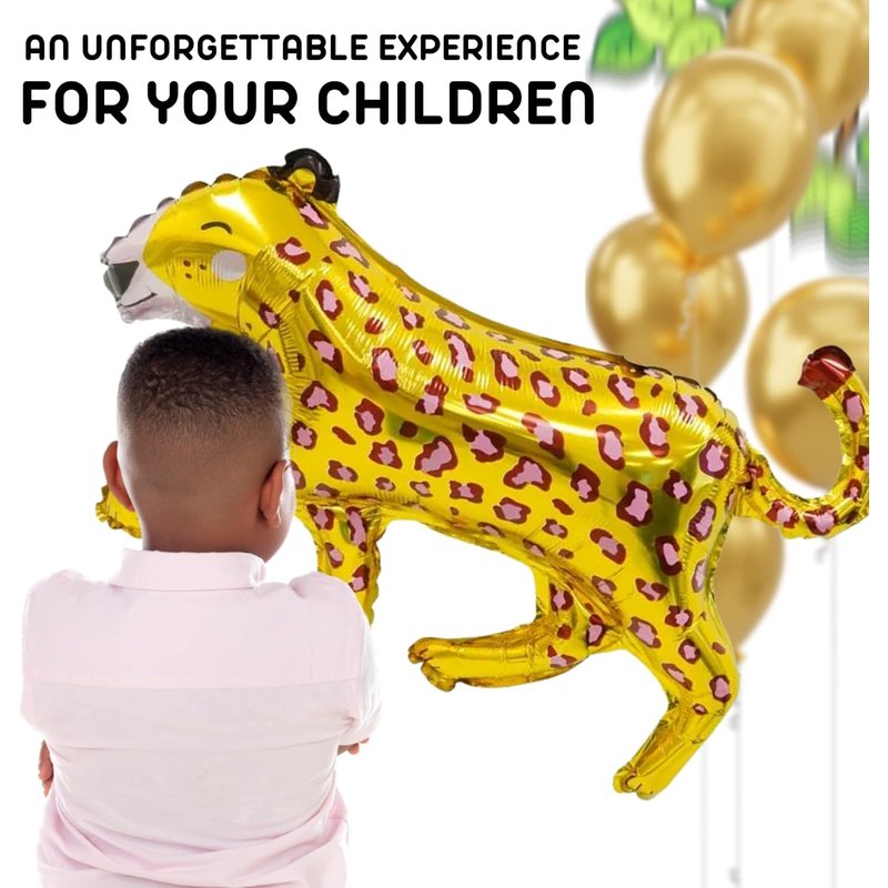 - Packaged Included: 4 pcs foil gold balloons in the shape of leopard. The size of gold foil leopard balloons is around 46 inch long and 31 inch tall. Perfect for gold animal birthday decorations, gold foil party, safari baby shower, gold jungle animal baby shower and other jungle themed party safari animal balloons jungle animal balloons party animal balloons animal balloons jungle safari jungle safari balloons animal print latex balloons jungle safari jungle animals balloons