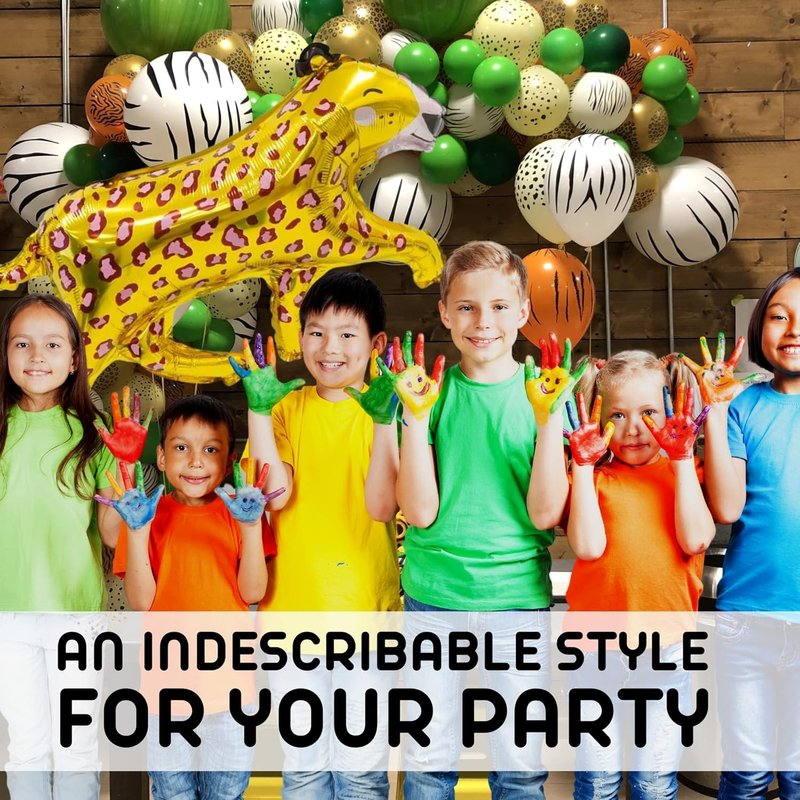 - Great Аddition: For more memorable atmosphere cheetah decor and gold decor at your party, you can use another cheetah party decorations, leopard print party decorations, cheetah print party supplies such as: leopard party plates, cheetah cake decoration, gold backdrop, leopard cake toppers, safari baby shower plates with other jungle theme birthday decorations. Let your guests step into the safari world gold jungle party with our kit cheetah balloons!