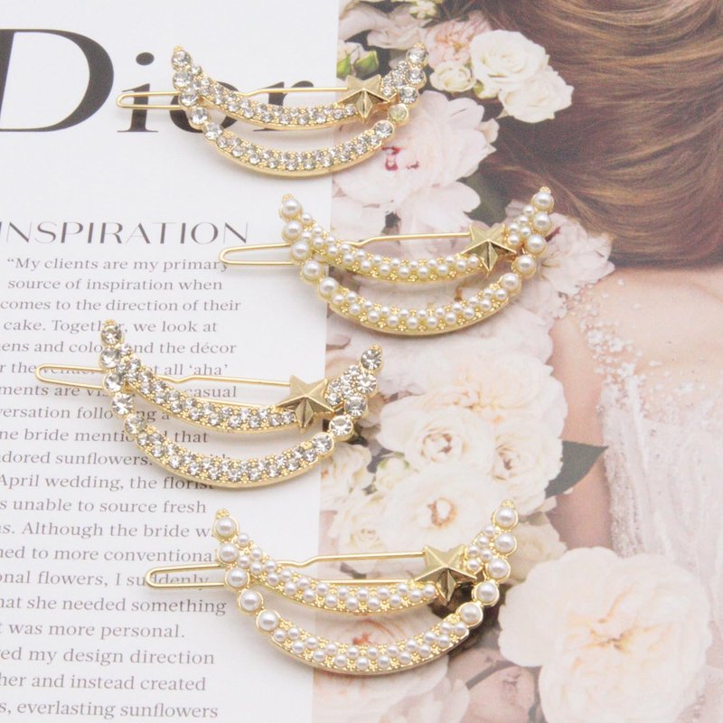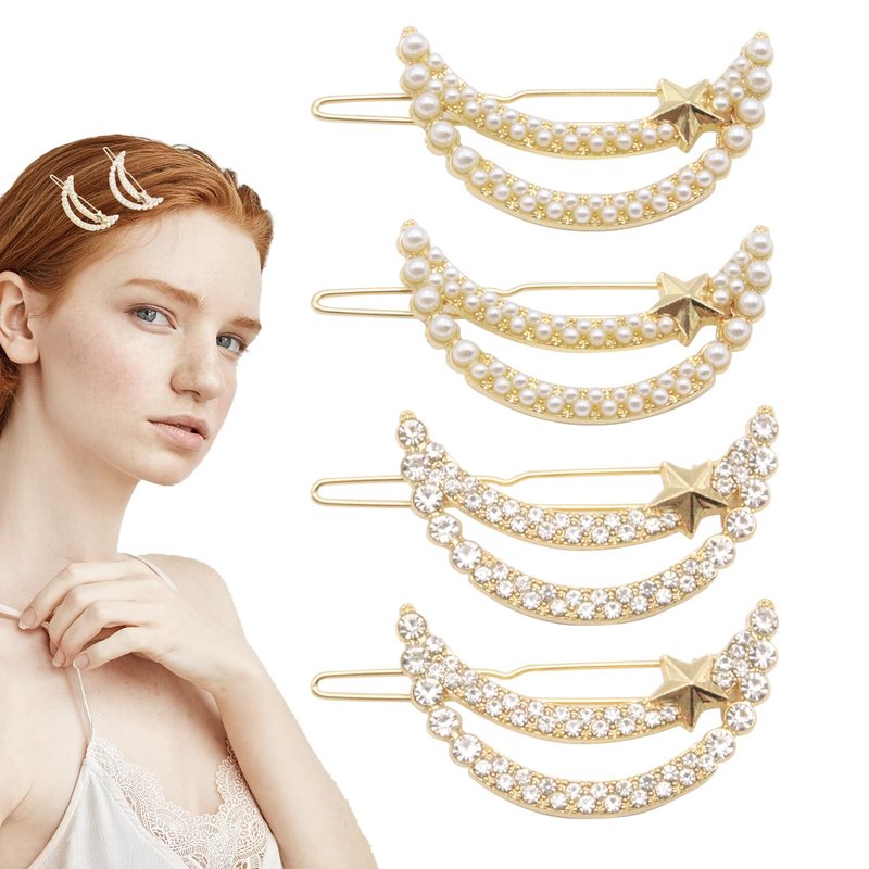 4Pcs Gold Moon Pearl Hair Clips Sparkly Rhinestone Clips Star Small Metal Hair Barrettes Decorative Wedding Hair Accessories for Women Girls Bride