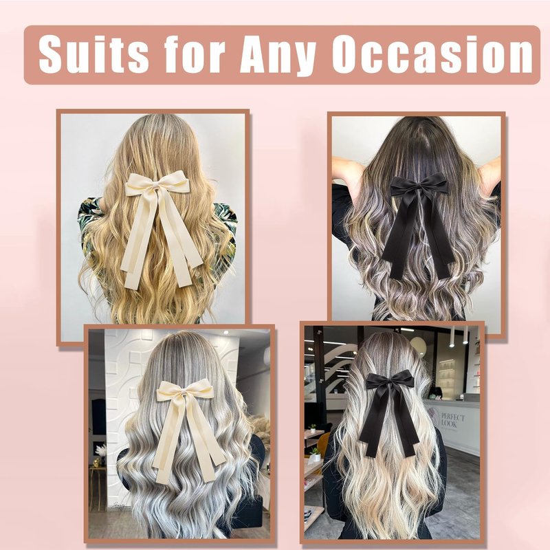 - 【Elegant Bow for Women or Girls 】Hair bow clip with a long tail is very fashionable and cute. They will let kinds of hair show charm, special suit for long hair. Whether an elegant adult woman or a young girl, it is suitable to wear it. They effortlessly complement various hairstyles, making them a must-have accessory for anyone seeking a quick and effortless style upgrade.