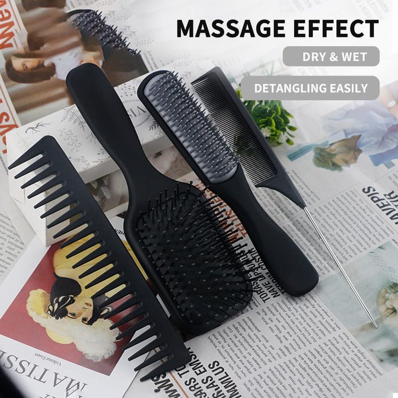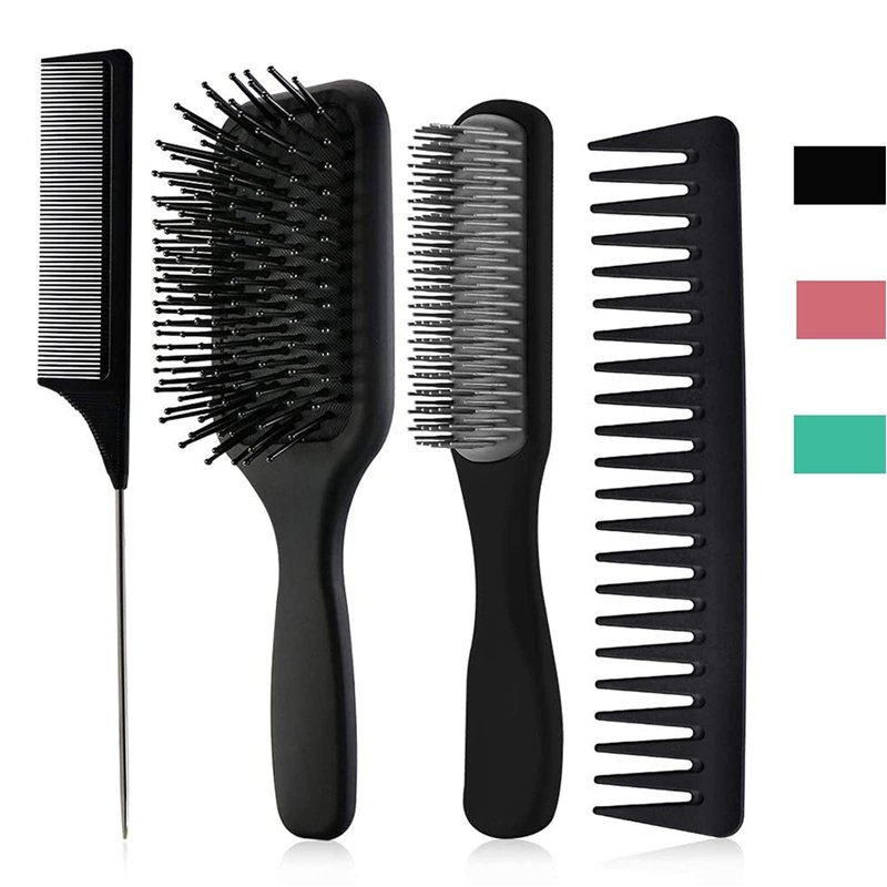 - ✔️4PCS HAIR BRUSH AND COMB SET: Include 4 kinds of brushes and combs. Paddle brush, styling brush, wide tooth comb and tail comb. Suitable for wet, dry, long, short, thick, curly and straight hair. The perfect detangler hair brush set for women, men, friends, children or family members of all hair types