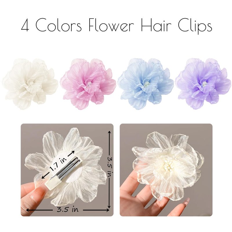 - 🌸VIBRANT COLORS:You will get 4 pcs of rose flower hair clip in different colors including purple, pink, white, blue to match your different colored outfits and looks.