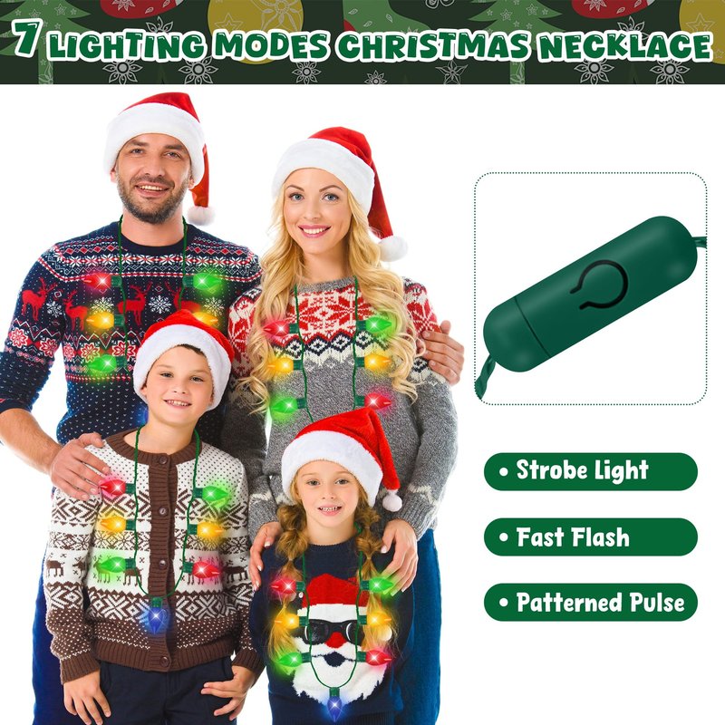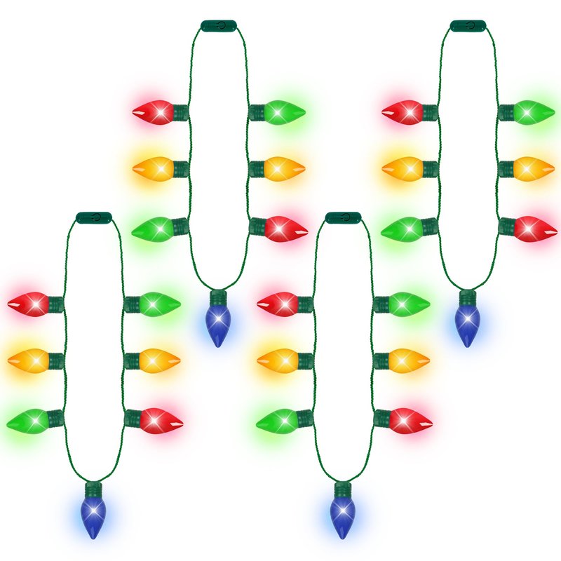 - You will Get - 4PCS light up Christmas necklace with 7 bulbs. Colorful bulb necklace makes you spend a memorable Christmas Day.