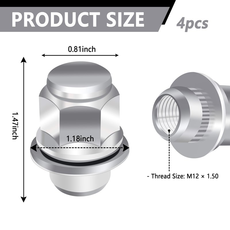 4PCS M12x1.5 Lug Nuts Set,Chrome-Plated Steel Wheel Locks Lug Nuts with Washer Replaces OEM#90084-94001,Lug Nut Lock Set Compatible with Toyota Camry Prius Tacoma (4PCS)