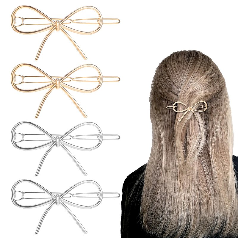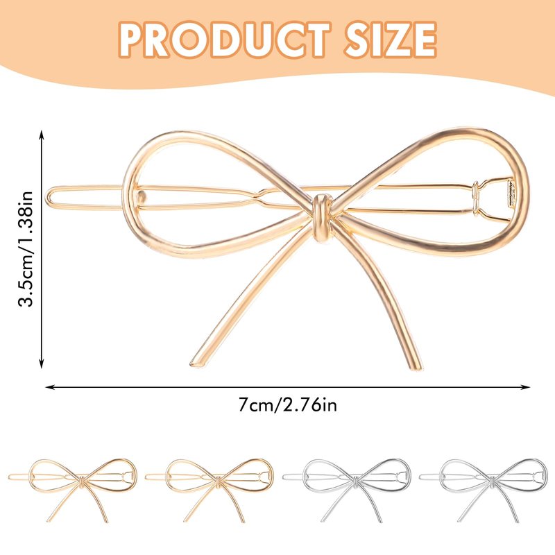 4Pcs Metal Bow Hairpins, Hair Clips for Women Girls,Gold and Silver Bowknot Barrettes Simple Bow Hair Barrettes, Bow Hair Clips and Hair Pin