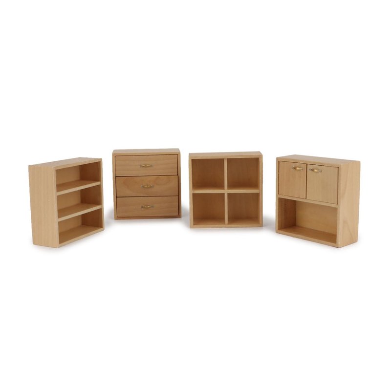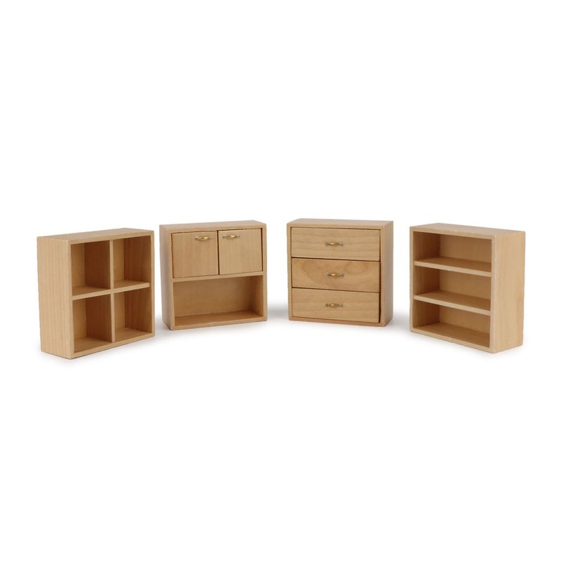 4PCS Miniature Furniture Set Wooden Cabinet Cupboard 1:12 Dollhouse Various Styles Decoration DIY Dollhouse Freely Combinable Furniture Kit Kitchen Bedroom Living Room Display Ornaments (Wood)
