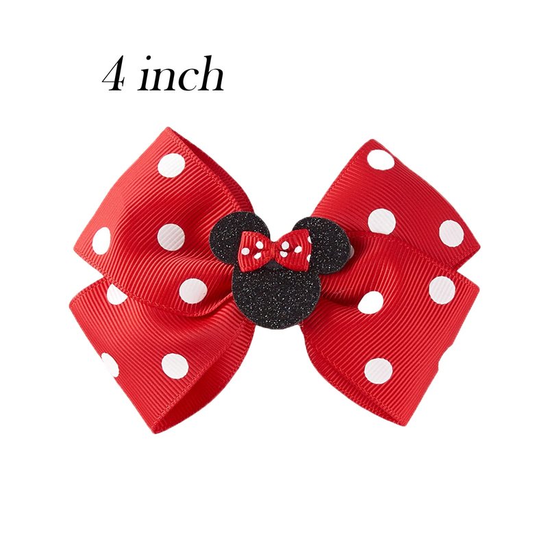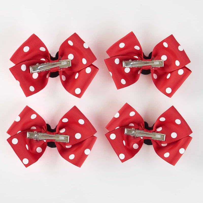 4Pcs Mouse Ears Bow Clips for Girls Women 4Inch Birthday Party Decorations Gift Costume Hair Accessories Polka Dot Red