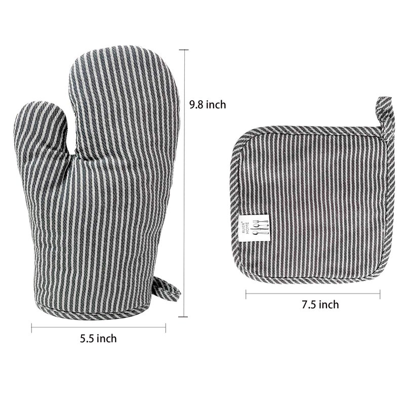- 【4 PIECE KITCHEN ACCESSORY SETS】Our oven mitts and pot holders set including 2pcs non-slip surface kitchen oven gloves (9.5X5.5in) and 2pcs pot holders (7.5X7.5in), fit for indoor cooking, baking, BBQ or outdoor grilling.