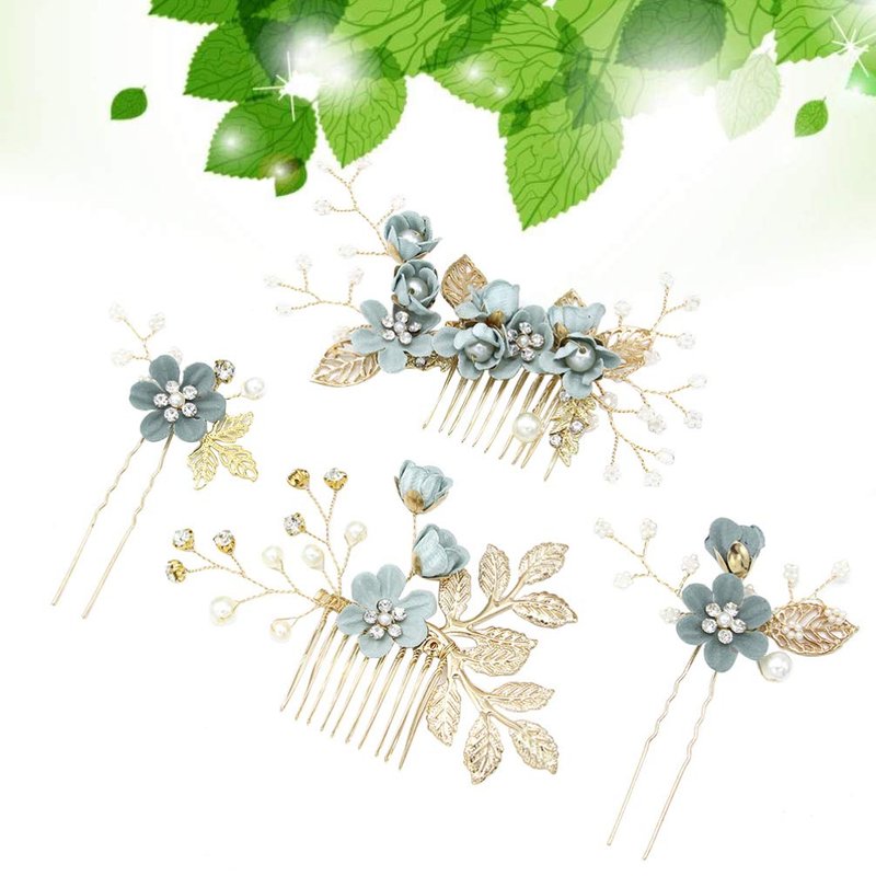 4pcs pearl floral leaf hair accessories Wedding Hair Comb Flower Hair Comb Set Rhinestone Pearl Hair Clips Wedding Hair Accessories for floral hair clip Brides bridal hair comb (Green)