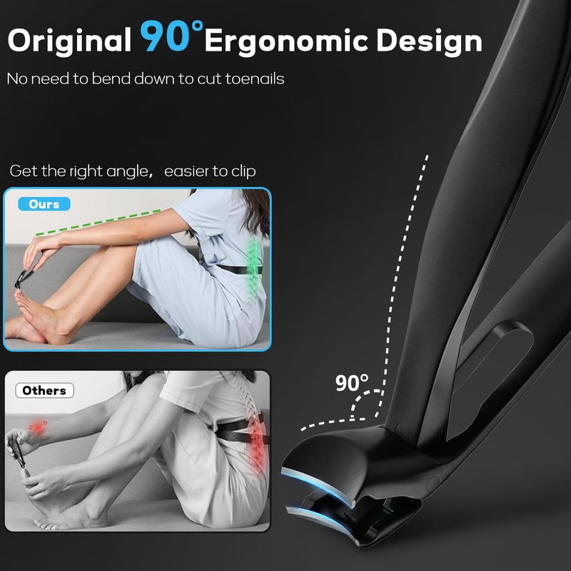 - [WIDE JAW OPENING NAIL CLIPPERS]:Our angled head precision toenail clipper is thoughtfully designed for Seniors who face challenges due to difficulty bending. It was very hard for you to reach your toenails, but now it takes little effort to cut your toenails with our Ergonomic Design nail cutters.