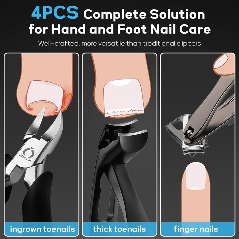 - [FOCUS ON NAIL CARE]:Wanmat toenail clippers kit also includes a nail file and lifter, we hope this manicure tools can solve all your nail problems.ONE SET can work with thick nails and ingrown toenails.