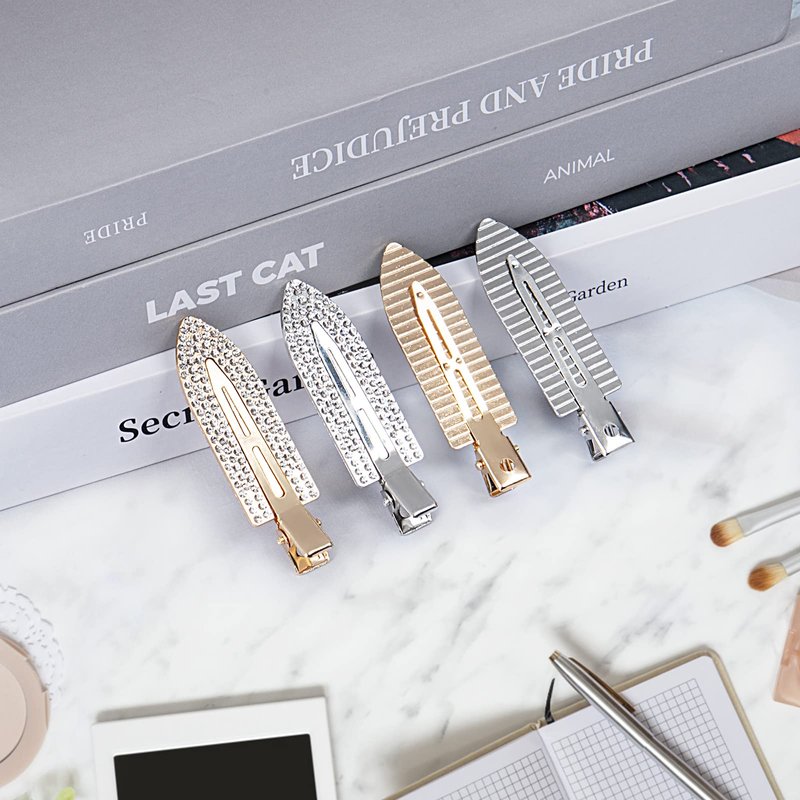 - [Package Information] You will receive 4 pieces no bend hair clips in gold and silver, which is of personalized shiny rhinestone design. Our rhinestone barrettes will not cause crease to your hair and provide you a fashionable appearance.