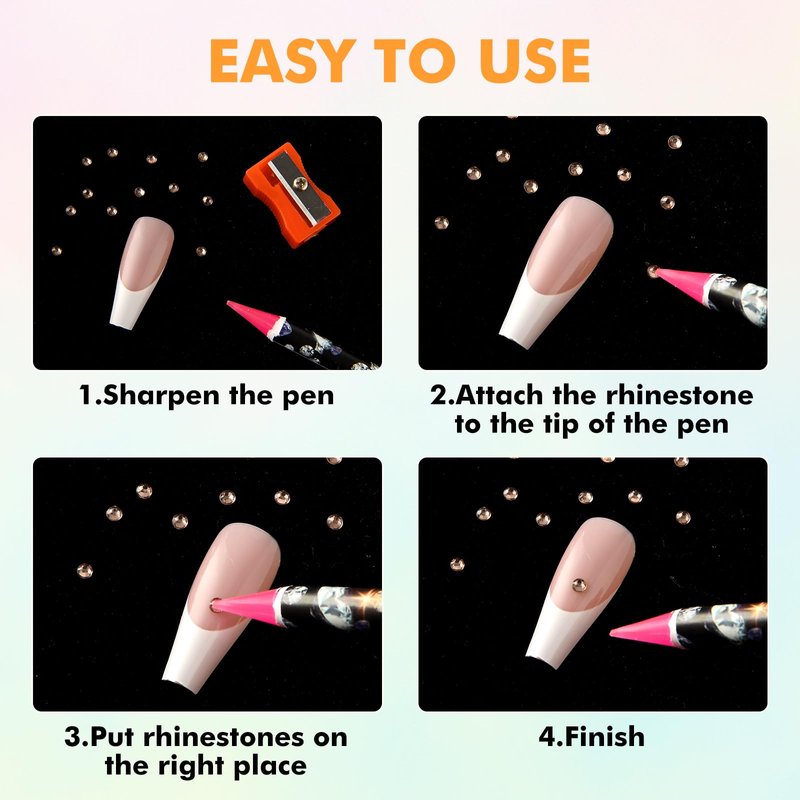 - 【Save your time】During the nail art DIY process, you may often encounter the situation that the drill bit is too small to clamp the tweezers. Then you can try our self-adhesive nail art dotting wax pencils, which can help you pick up rhinestones and gemstones to complete your manicure in an easier way, greatly saving your time.