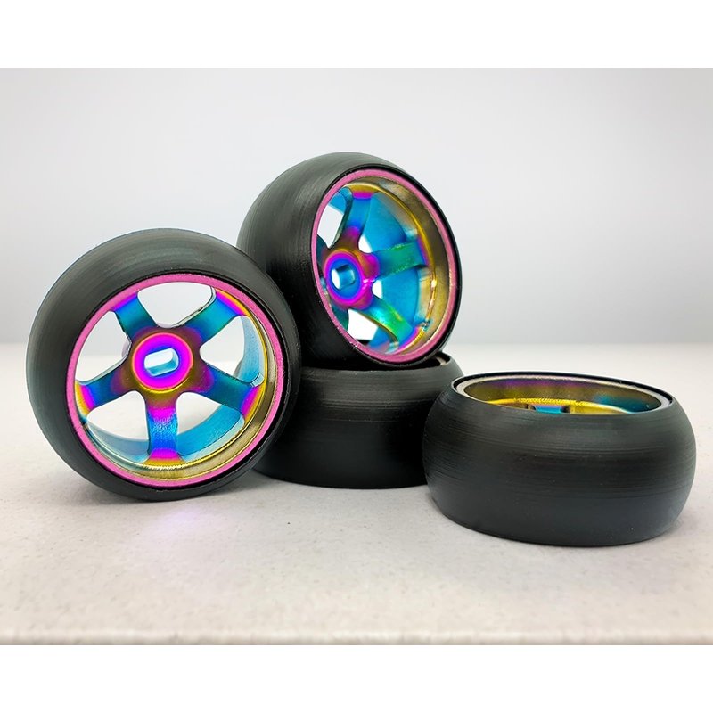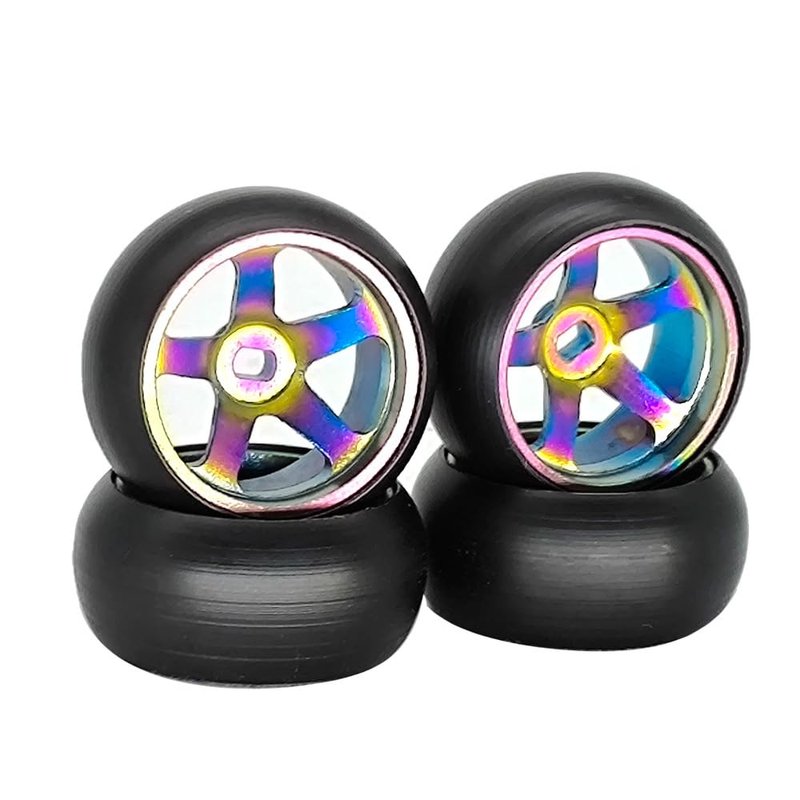- 【EXCELLENT RC DRIFT WHEELS】Size: OD: 25mm/0.98in; W: 11mm/0.43in; Weight:5g;This RC drift tires are small and lightweight, ideal replacement for old or damaged RC car tires. Easy and convenient to install. Color: colorful, colorful colors make your car look cooler