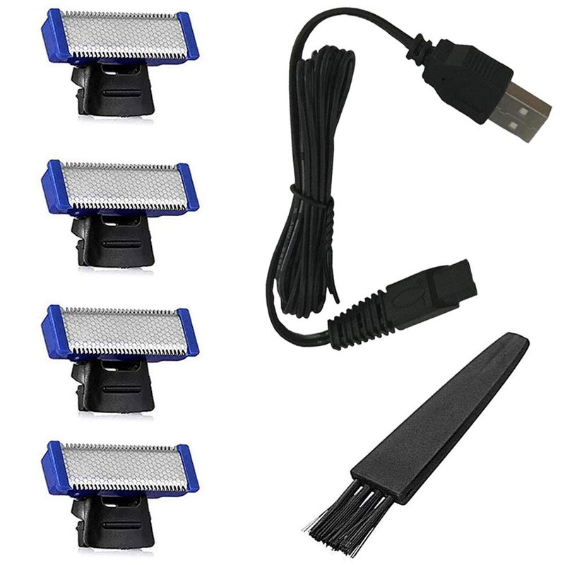 4PCS Shaver Head Replacement Charger and Brush for Electric Solo Shaver Cleaning Bursh USB Data Cable Power Trimmer Solo Head Replacement Charge Line (4Shaver Head & Cord&Brush)