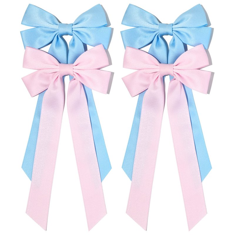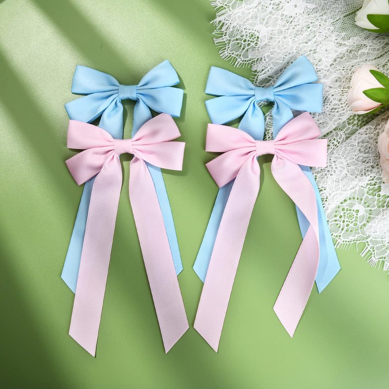 4PCS Silky Satin Hair Bows Hair Clip Pink Blue Hair Ribbon Clips for Women Ponytail Holder Hair Accessories Alligator Clips Bow for Women Girls Toddlers Teens Kids