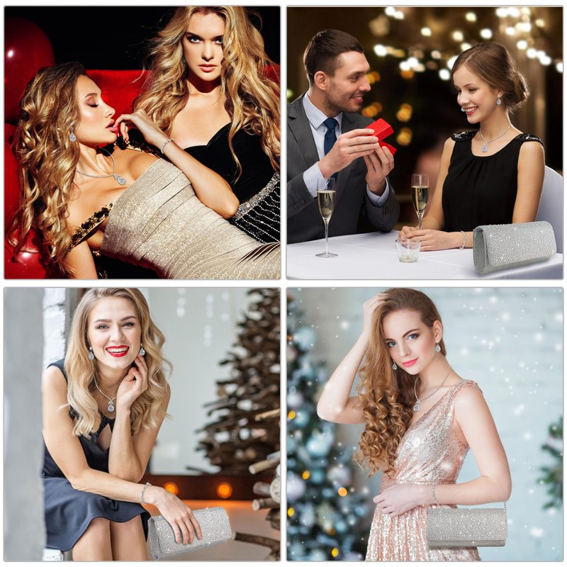 - ❀Feature of Silver Formal Purses For Women Evening:With detachable 47 inch/ 120cm chain long strap, let the bag to be used as an women's clutches & evening handbags,silver shoulder bag, crossbody bag,handhold or hung on shoulders.Cute and elegant clutch bag,sparkly bling bag and jewelry set,perfert for casual,travel,dinner,prom,wedding,ball,Christmas cocktail various parties or any other formal events.