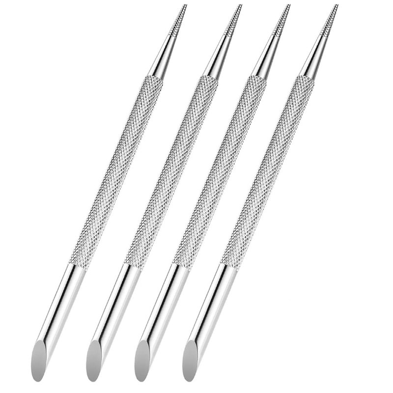 4Pcs Stainless Steel Cuticle Remover Professional Double Head Nail Art Cuticle Pusher Nail Stick Needle Manicure Pedicure Nail Care Tool for Fingernail and Toenail, Silver