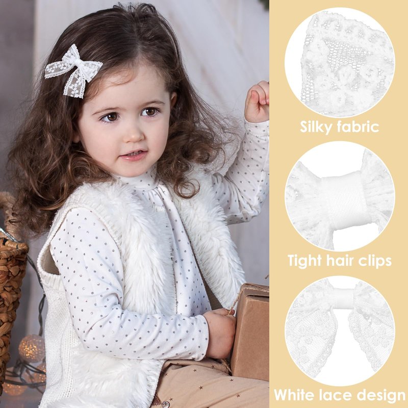 - PACKAGE INCLUDES: A set of 4 white lace bow hair clips with bow and ribbon bow styles, two of each style, delicate lace hair accessories to decorate your attire and enhance your hairstyle