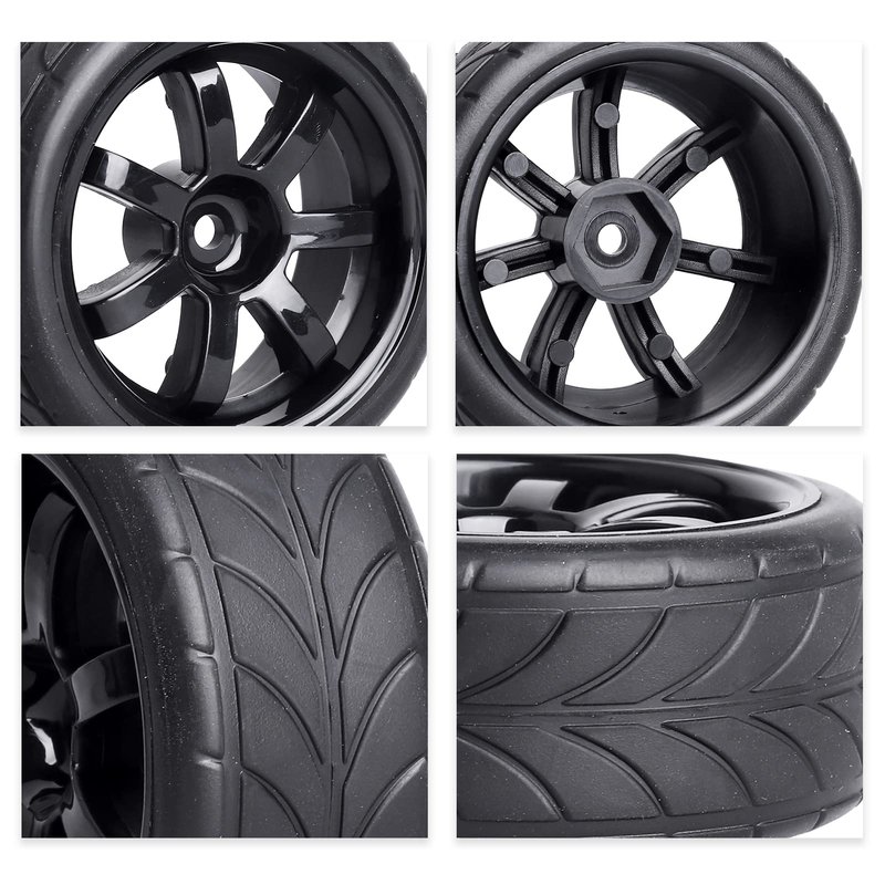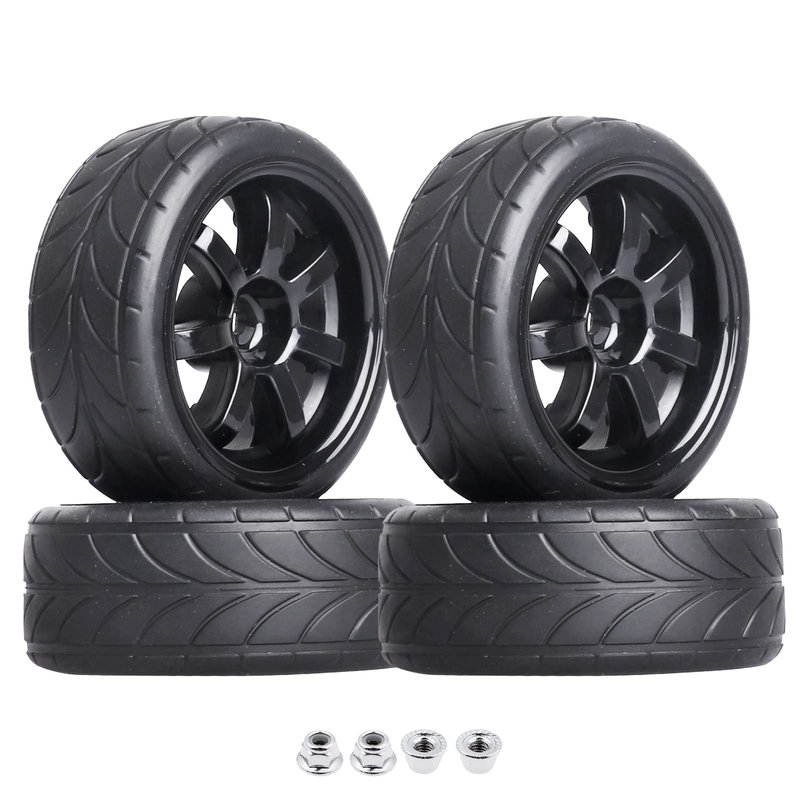 4PCS Width:1.02" (26mm) OD 2.56"(65mm) Rubber Tires & Wheel Rims 12mm Hex Hub for 1/10 Scale RC Vehicle On Road Touring Car