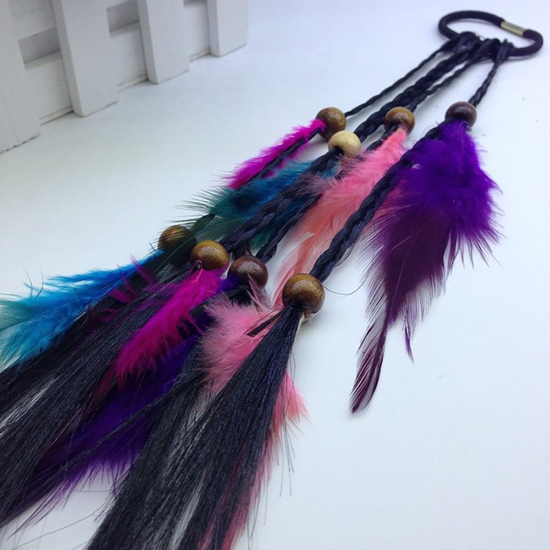 4PCS Women Lady Handmade Boho Hippie Hair Rope Head Wrap Hair Band Headbands Elastics Feather Hair Tie Ponytail Holders Hair Accessories Headdress