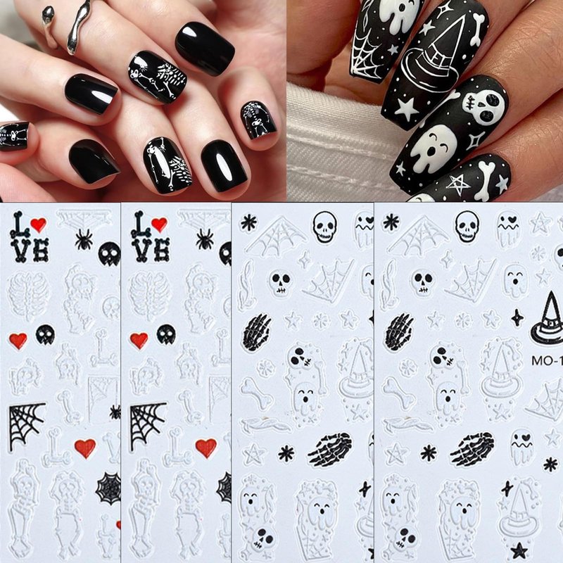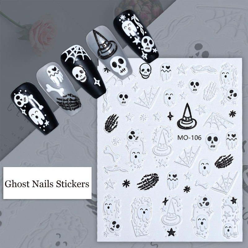Package : 4 Sheets Halloween Ghost Skull Nail Stickers Set